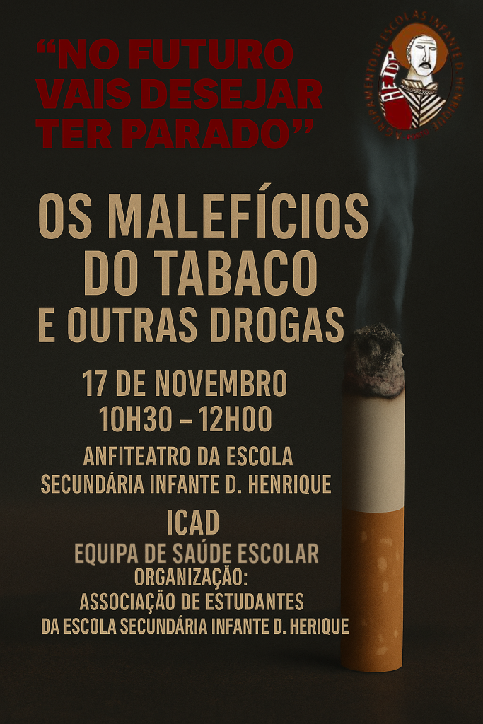 No âmbito destas datas tão marcantes, a Associação de Estudantes promoveu a palestra “Os Malefícios do Tabaco”, sendo o público alvo os alunos do 9º Ano e do Ensino Profissional. Esta Iniciativa pretendeu sensibilizar, alertar, informar e promover escolhas mais conscientes para o futuro dos nossos estudantes.