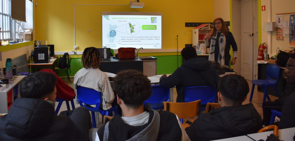 Nos dias 21 e 23 de janeiro, os alunos dos cursos profissionais de Técnico Manutenção Industrial e Técnico de Eletrotecnia, assistiram a duas sessões de Educação para a Prevenção, Segurança e saúde no trabalho, promovido pela Dra. Luísa Carneiro, representante da Autoridade para as Condições de Trabalho (ACT). O Tema faz parte da planificação da […]